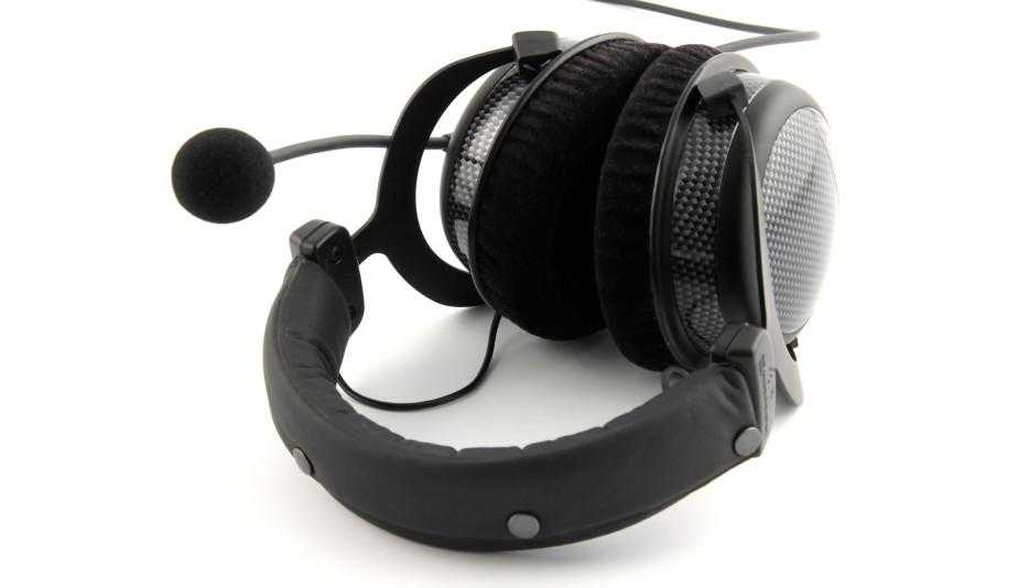 На левой чашке закреплен поворотный механизм микрофона, соединенный с гибкой штангой, на которой находится сам микрофон с поп-фильтром. Механизм поворачивается в достаточно широких пределах, а гибкая штанга позволяет подобрать более удобное положение микрофона.