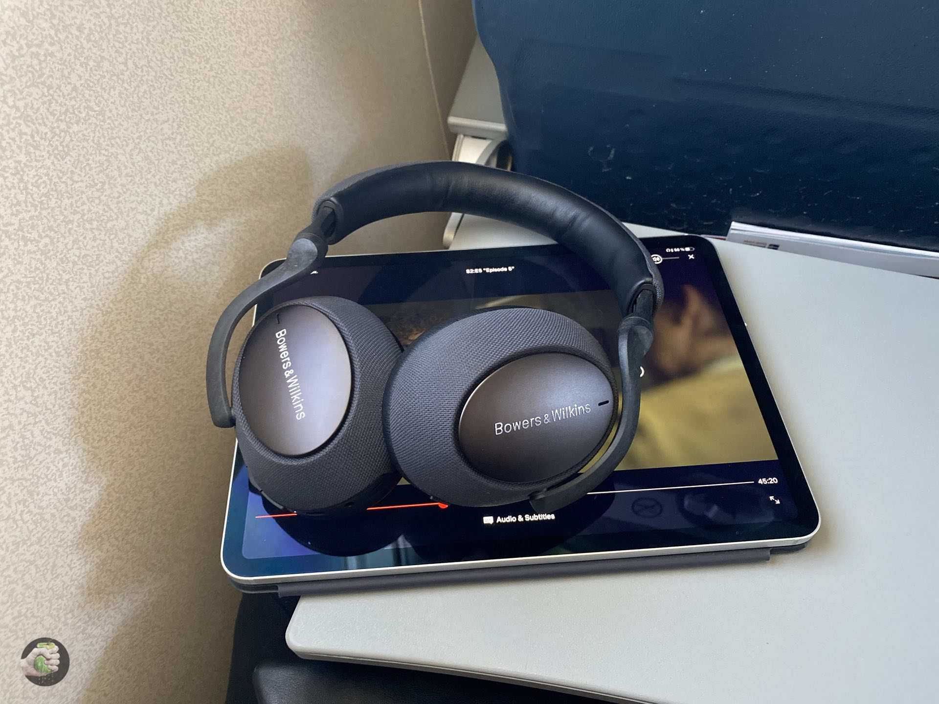 В целом я прям очень доволен. В Bowers & Wilkins учли недоработки прошлой модели и сделали серьёзного английского киллера для любой другой модели с шумоподавлением. А ещё тут есть топовые сенсоры: чашку сдвигаешь назад — кино на паузу, спокойно пообщался со стюардессой, получил свой томатный сок — продолжил просмотр. Топово! И ещё топово, что кнопки механические: случайно не нажмёшь, как ни прижимайся чашкой к стенке, спинке сиденья или плечу очаровательной соседки.