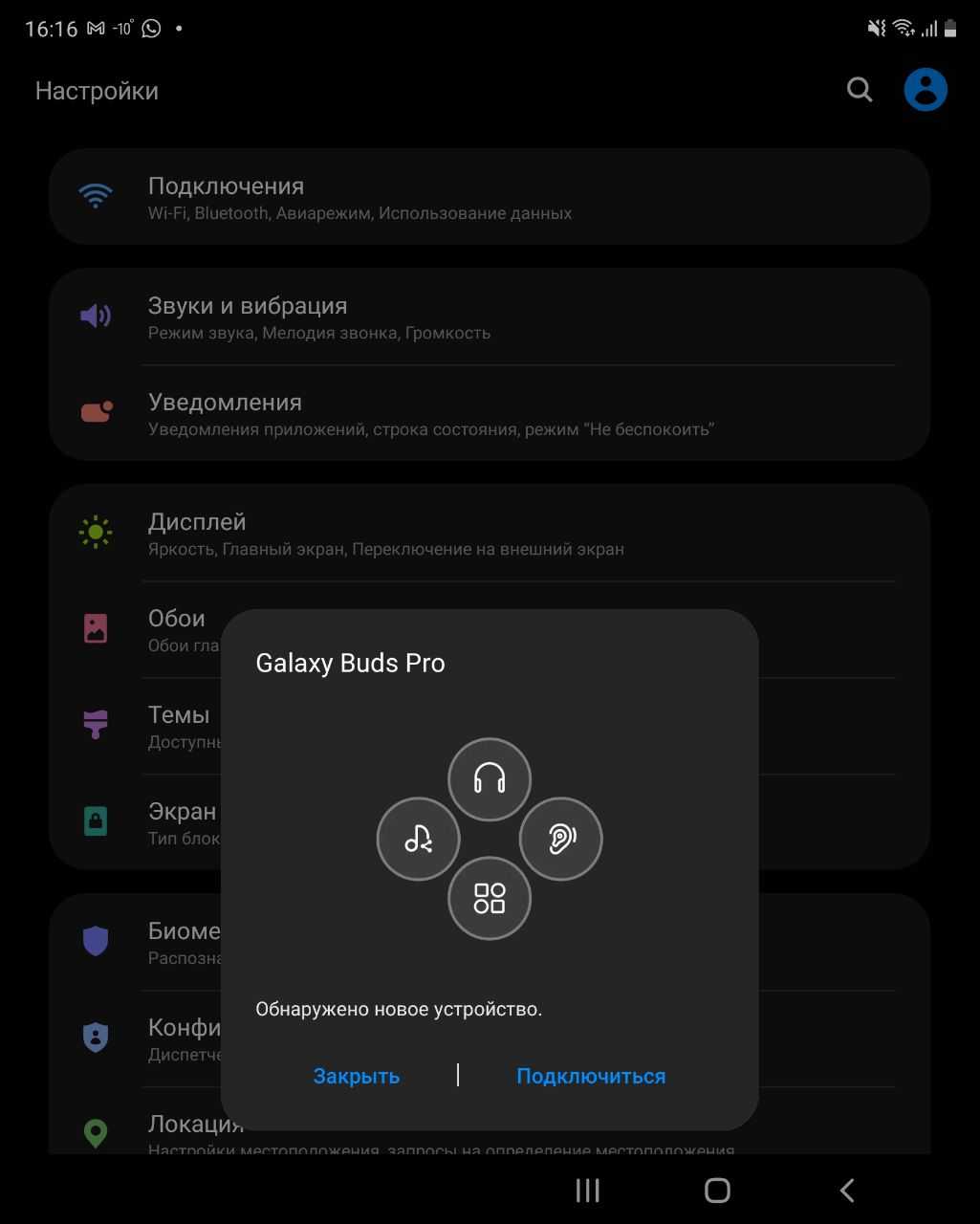 Когда я открыл кейс рядом с Galaxy Fold 2, тут же появилось предложение подключить наушники, затем началось скачивание программы Galaxy Wearable
