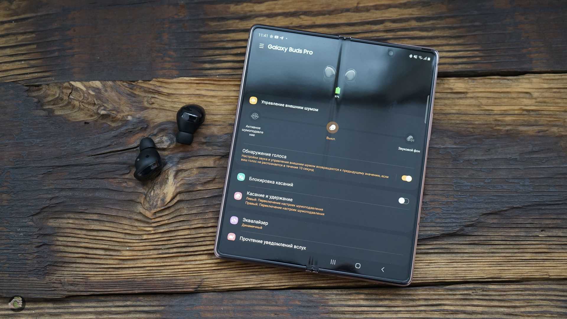 Есть и ещё интересное. С точки зрения Bluetooth здесь всё круто: профиль 5.0, быстрое переподключение к разным устройствам в экосистеме Galaxy (например, если у вас есть планшет или другой смартфон с OneUI 3.1). С точки зрения кодеков — это фирменный Scalable Codec, AAC и SBC, модель универсальна и подойдёт для пользователей любых устройств. С Fold 2 работает Scalable Codec, и он хорош, я использовал Spotify с «максимальной» подпиской и получил от звука большое удовольствие