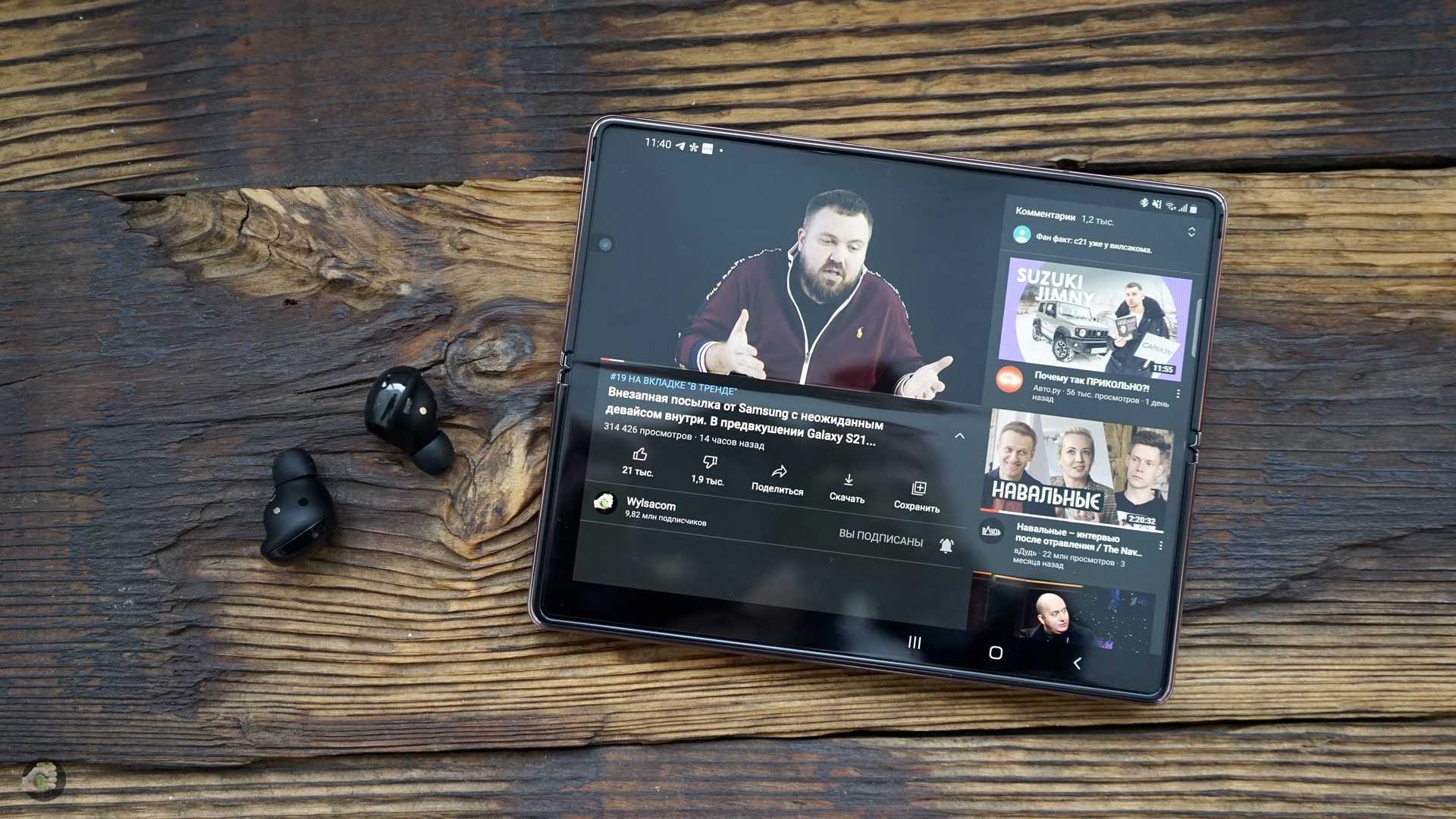 Ещё один момент связан с цветом. Чёрные глянцевые наушники смотрятся классно, но ещё есть серебристые и фиолетовые, и вот я бы себе выбрал фиолетовые — понимаю, решение не самое популярное, но уж больно классно смотрятся. Вообще, у Samsung очень интересные цвета, я мог купить чёрный Fold 2, но в итоге остановился на «бронзе» и до сих пор не жалею.