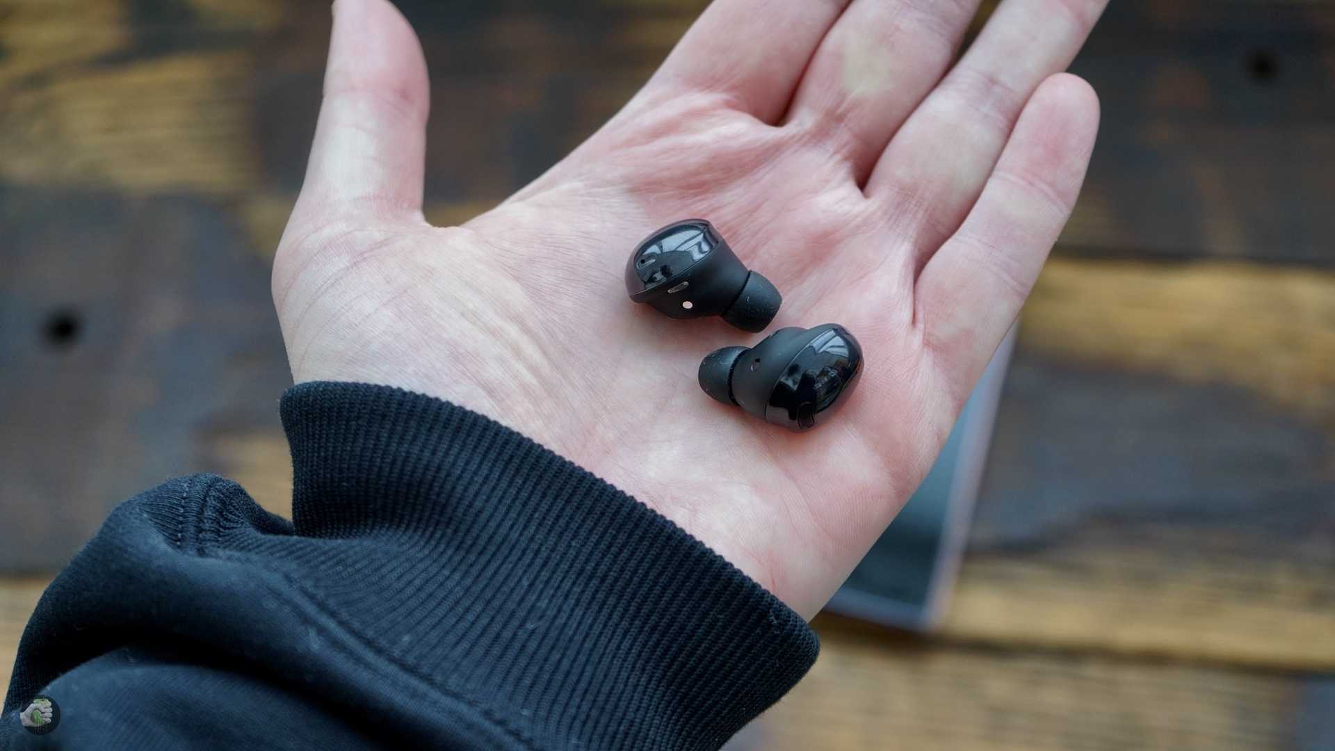 Кнопок на чашках нет, управление осуществляется с помощью касаний. Некоторые штуки происходят интуитивно. Например, если включить специальную настройку в меню программы Galaxy Wearable, то, когда вы начнёте говорить, наушники включат режим прозрачности — это очень удобно в офисе. Кто-то что-то спросил, ты не услышал, так как музыка играет, переспросил — и тут же все окружающие звуки прорываются к тебе. И всё это без рук!