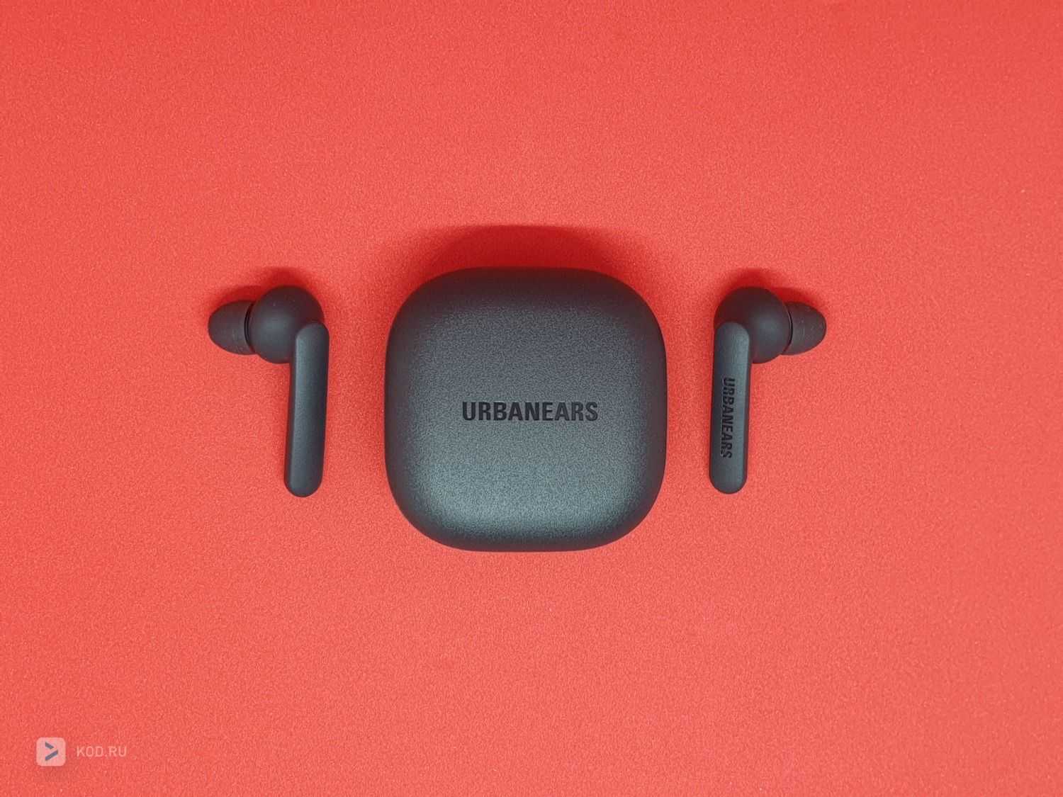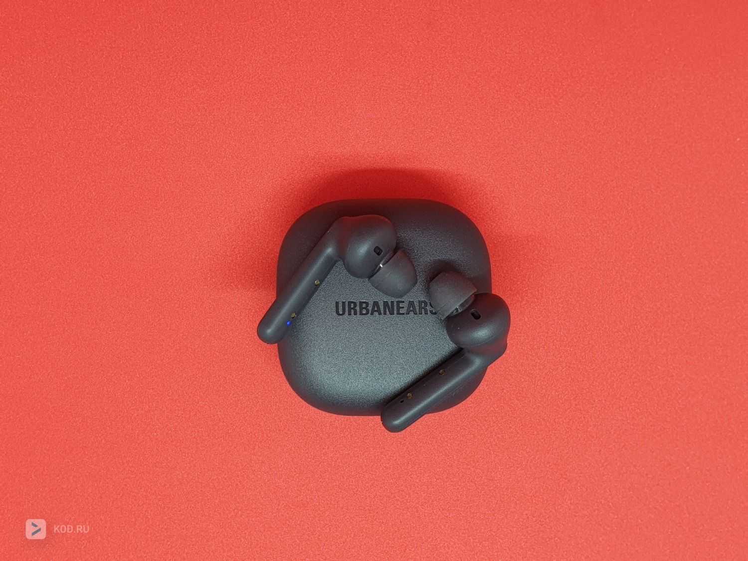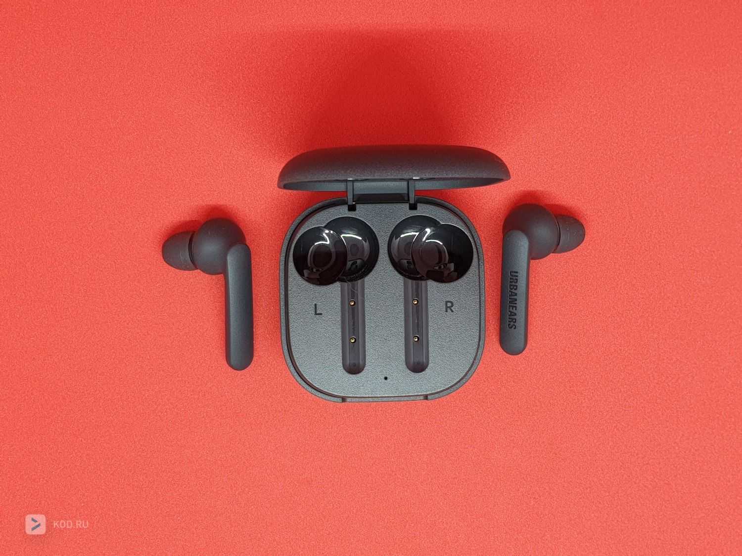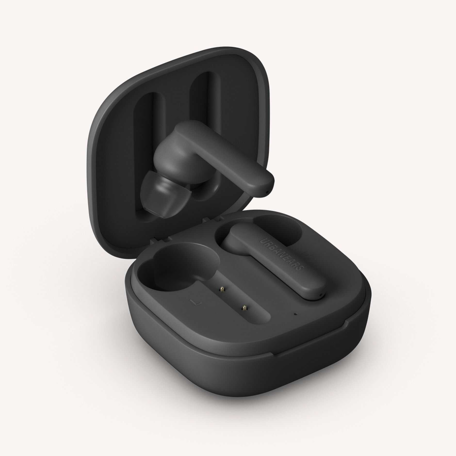 Экстерьер наушников (как и кейса) выполнен в минималистичном дизайне: матовый чёрный пластик, на правом наушнике снаружи — практически сливающаяся с корпусом надпись Urbanears, на стороне, прилегающей к кейсу или щеке пользователя — светодиод, светящийся белым, если наушник работает. На этой же панели на каждом наушнике расположено по два позолоченных контакта для фиксации в кейсе.